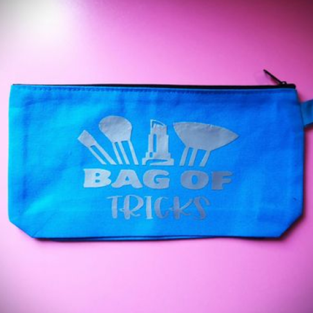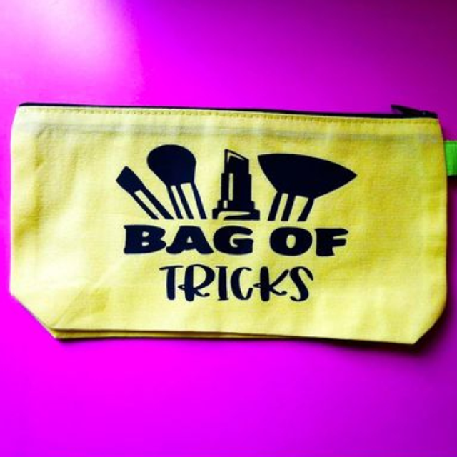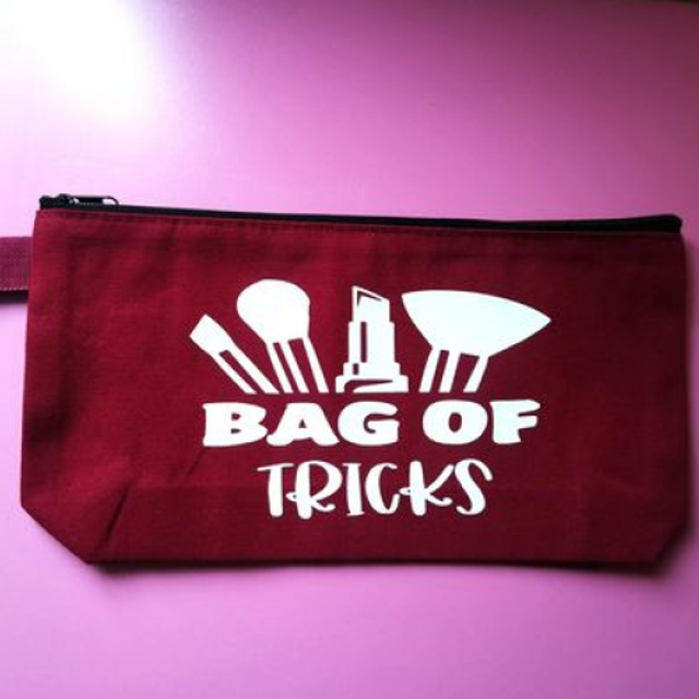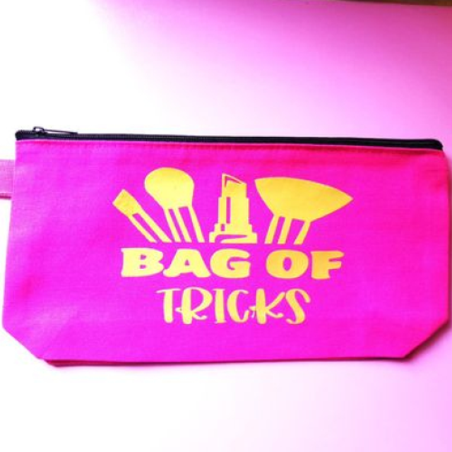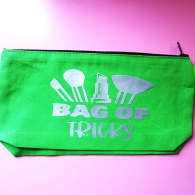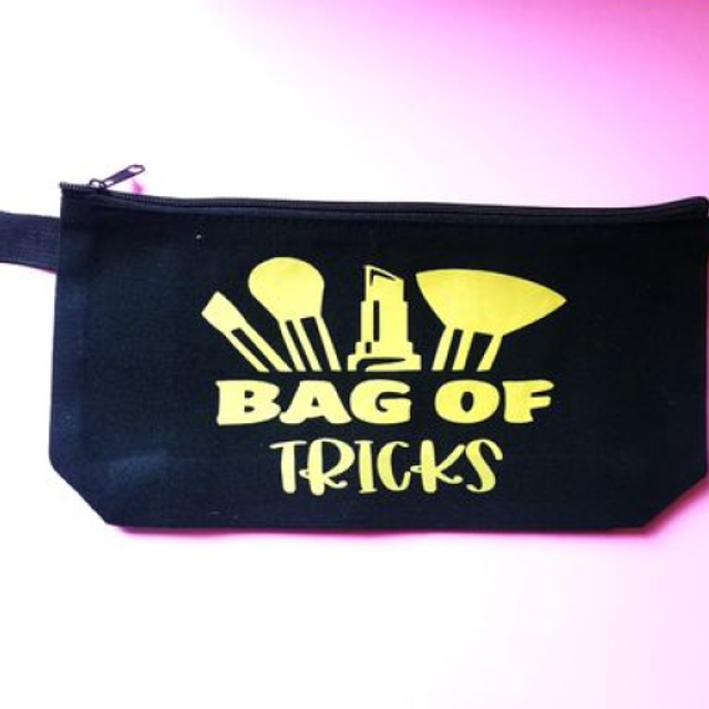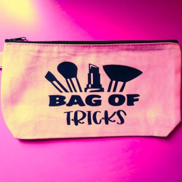 Each bag features a unique design with "Bag of Tricks" and makeup tools graphic. Ideal for organizing your makeup essentials.
