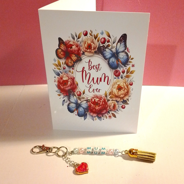 Perfect for any occasion, this set includes a card and a matching bag charm, making it a thoughtful and unique gift for any Mum.