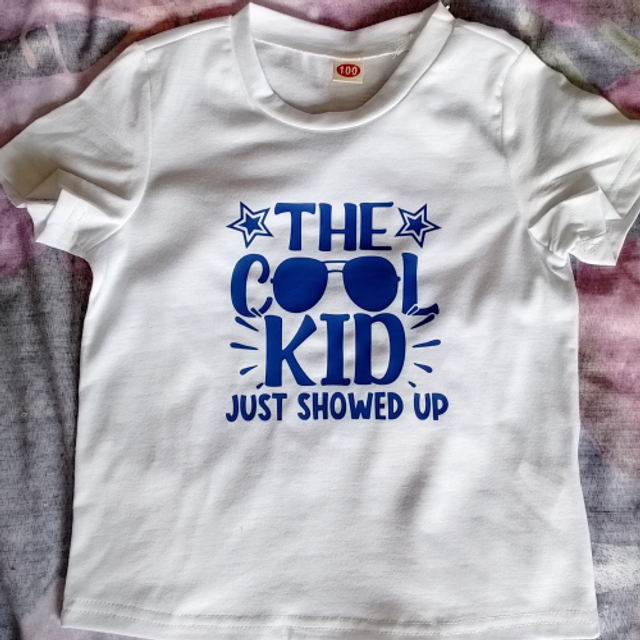 Boys The Cool Kid Just Showed Up T-Shirt - Available in grey or white, perfect for ages 3-4 & 4-5 years.