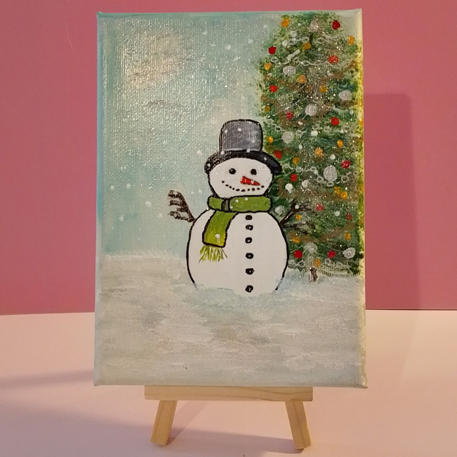 Charming Hand Painted Christmas Themed Small Canvas With Easel - 4 Designs