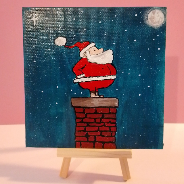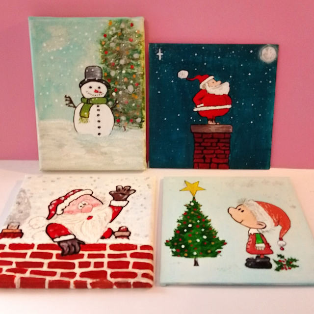These charming hand-painted Christmas-themed small canvases with easels features four different holiday designs, perfect for adding a festive touch to your home décor.