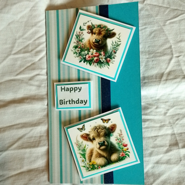 Celebrate birthdays with this unique and charming Handmade Highland Cows Birthday Card!