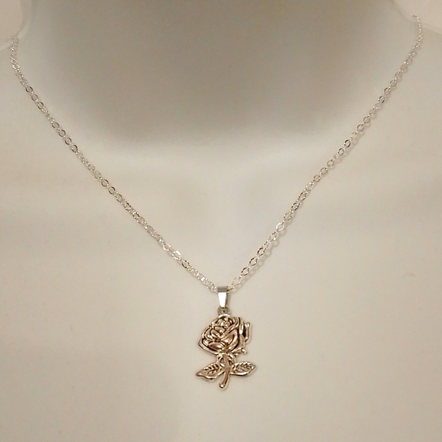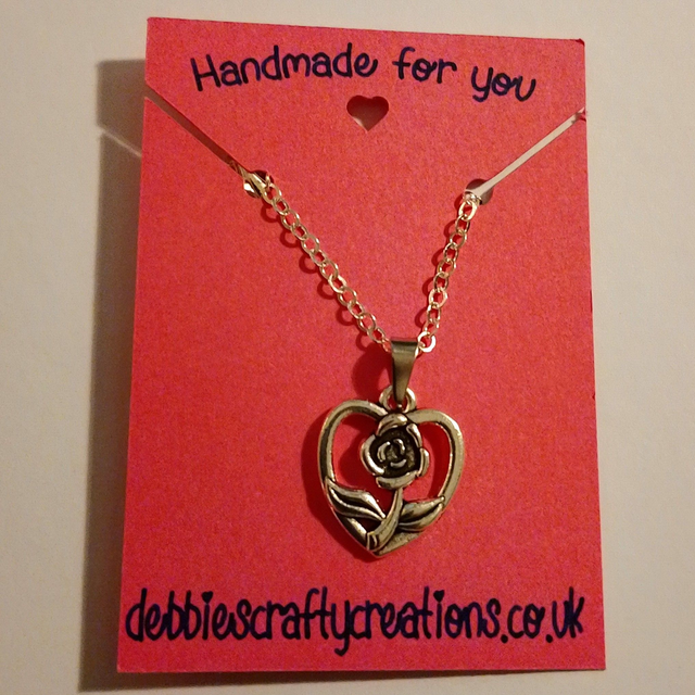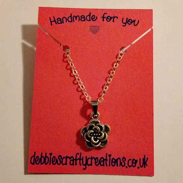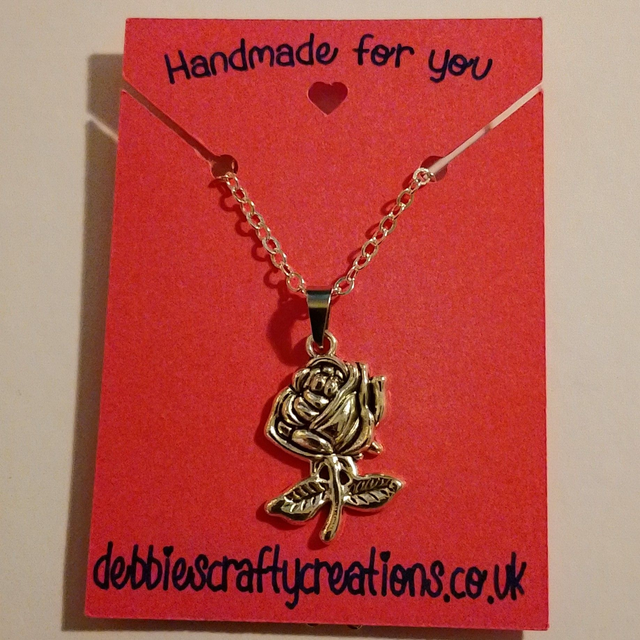 This Handmade Ladies 18" Silver Coloured Rose Pendant Necklace is a charming piece of handmade jewellery .