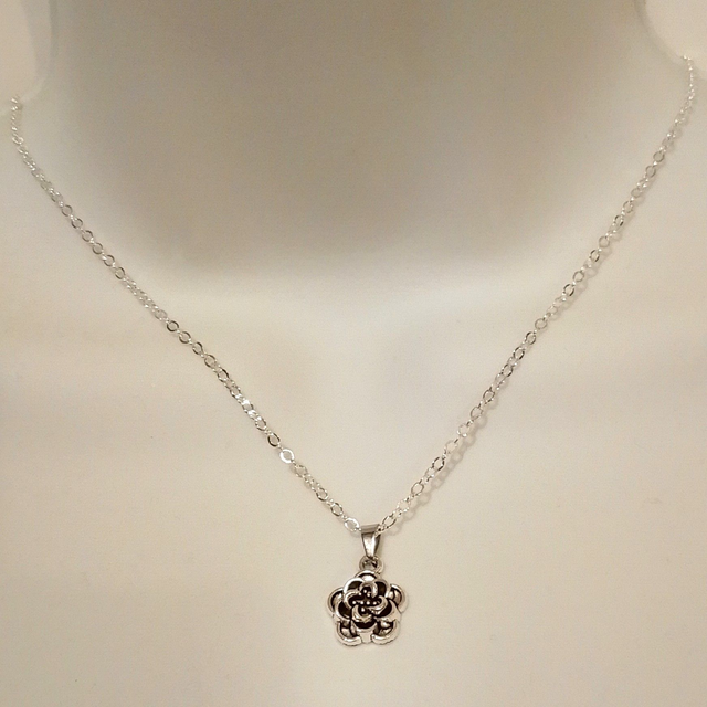 Handmade Ladies 18" Silver Coloured Rose Pendant Necklace