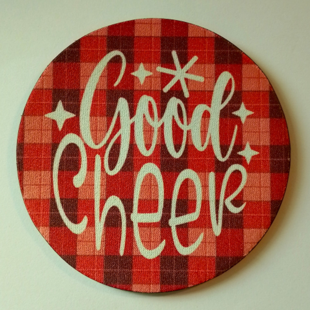 These handmade round non-slip Christmas coasters feature 12 different designs, perfect for adding a festive touch to your table setting or bar area.