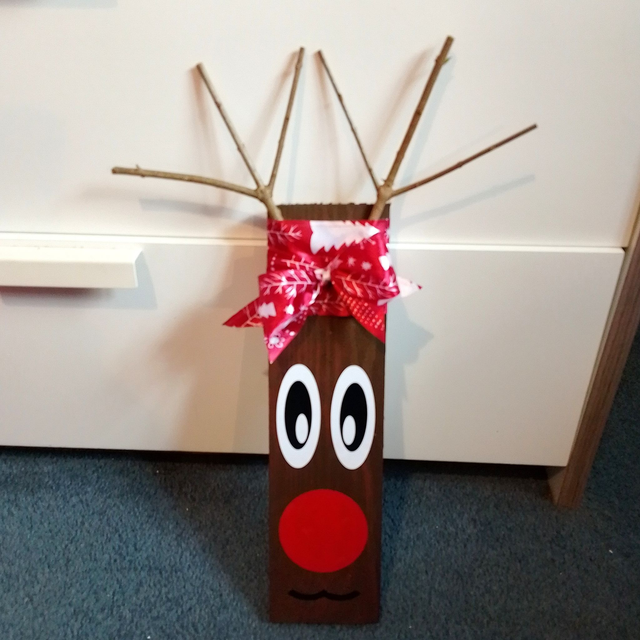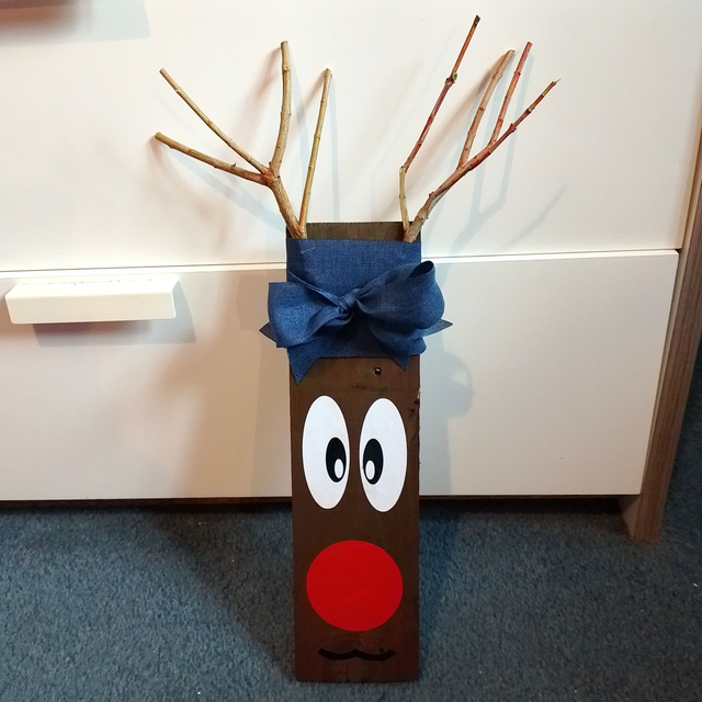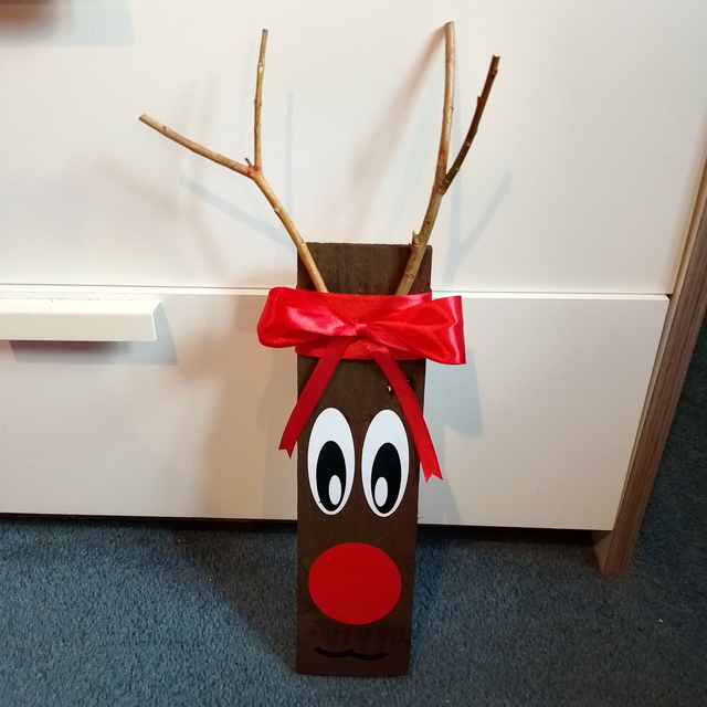 This handmade rustic reindeer is a charming decoration perfect for Christmas.