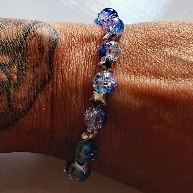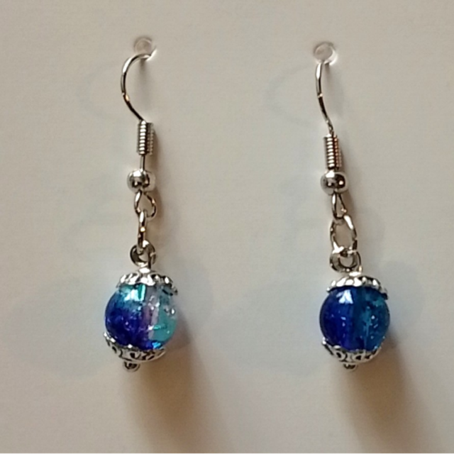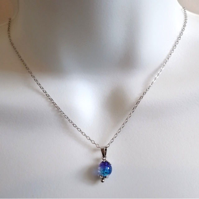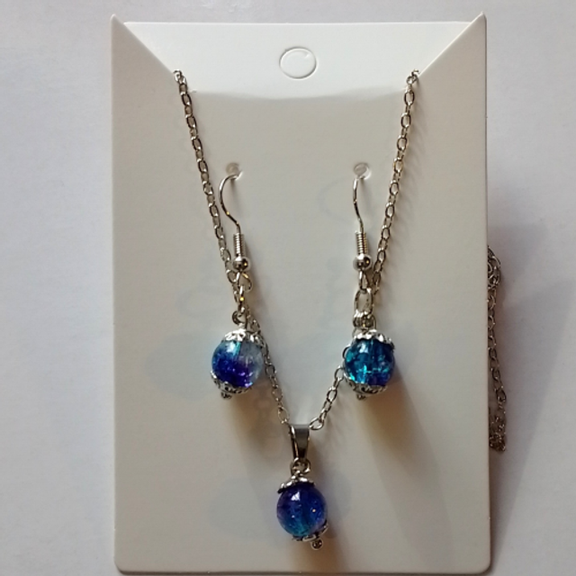 This Handmade Silver Coloured Blue Bead Necklace, Bracelet & Earring Jewellery Set offers a classic look.