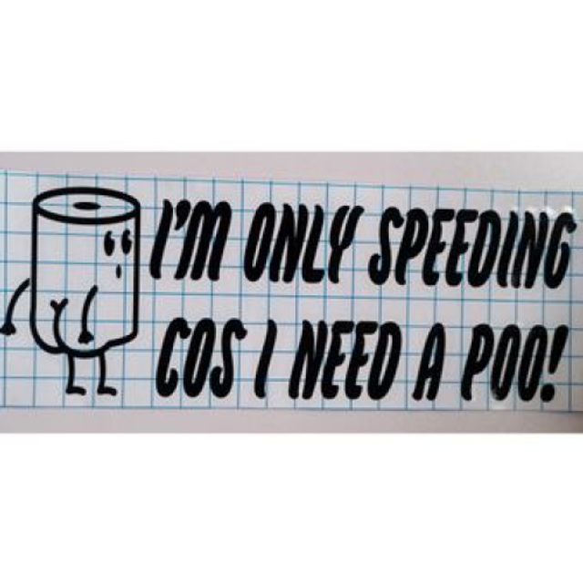 Give your car a dose of humour and personality with the "I'm Only Speeding Cos I Need A Poo!" car decal.