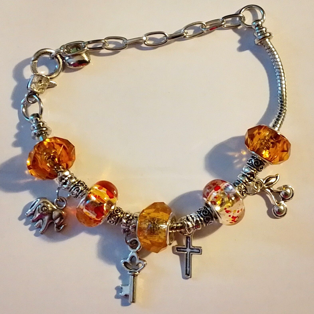 This handmade 7 1/2 inch adjustable snake chain bead and charm bracelet is designed for women who appreciate unique and stylish accessories.