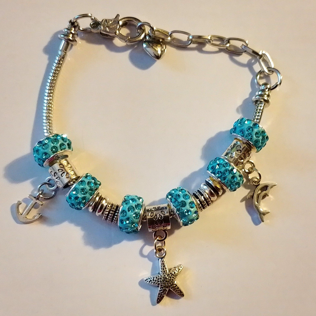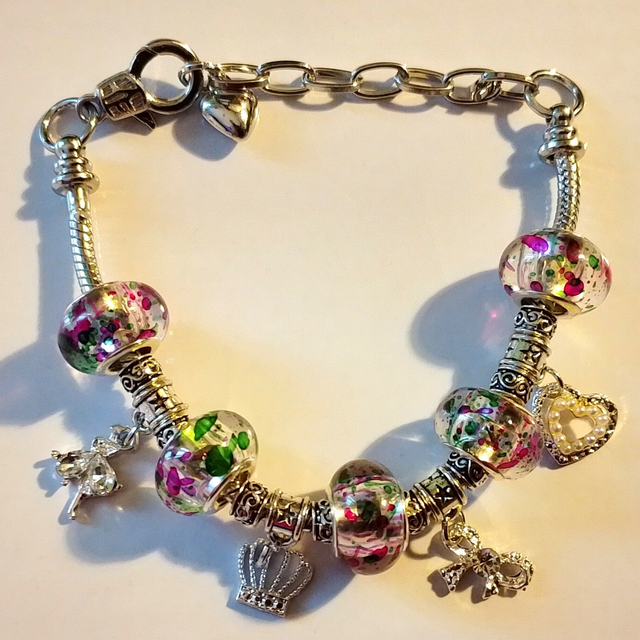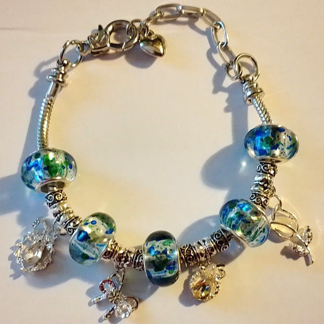 Ladies Handmade 7 1/2" Adjustable Snake Chain Bead & Charm Bracelet - 7 Designs