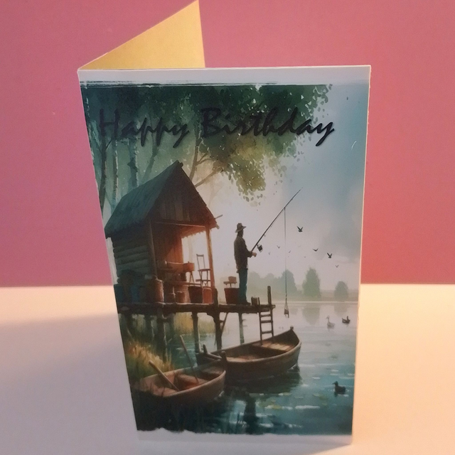 The folded card, measuring 14.5cm in height and 8cm in width, is perfect for any fishing enthusiast.