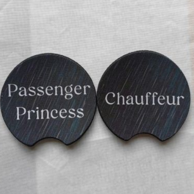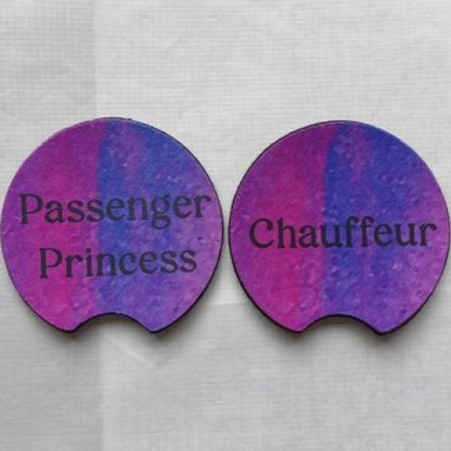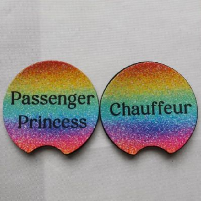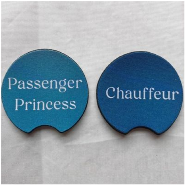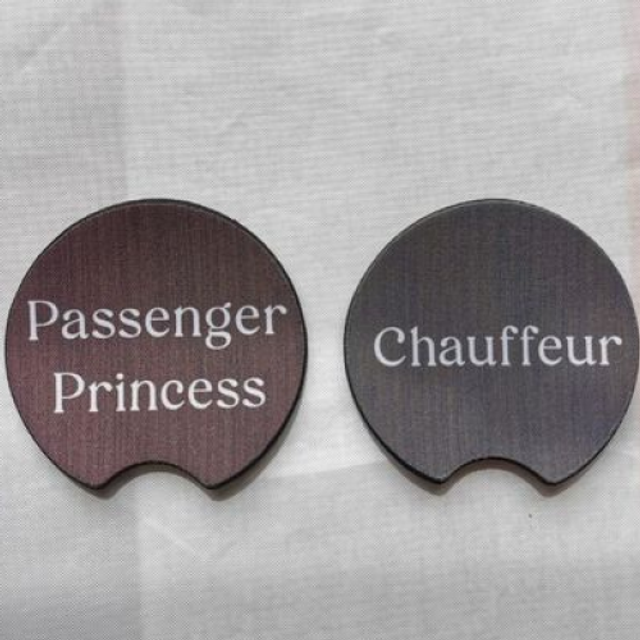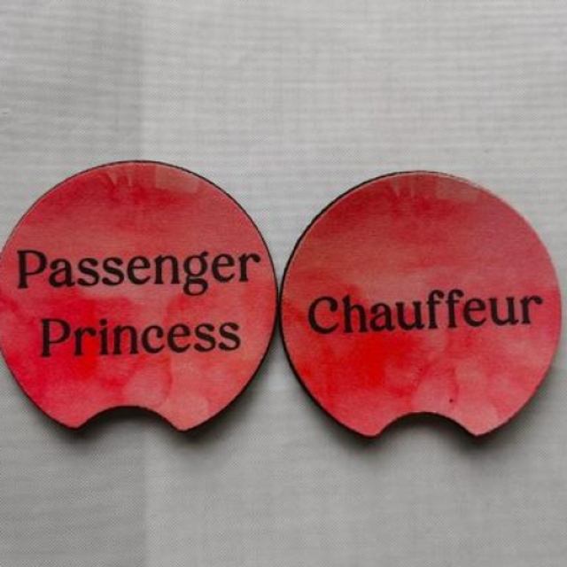 Pack of 2 Chauffeur & Passenger Princess Car Cup Holder Coasters - Universal Fit Coasters - 6 Designs To Choose From