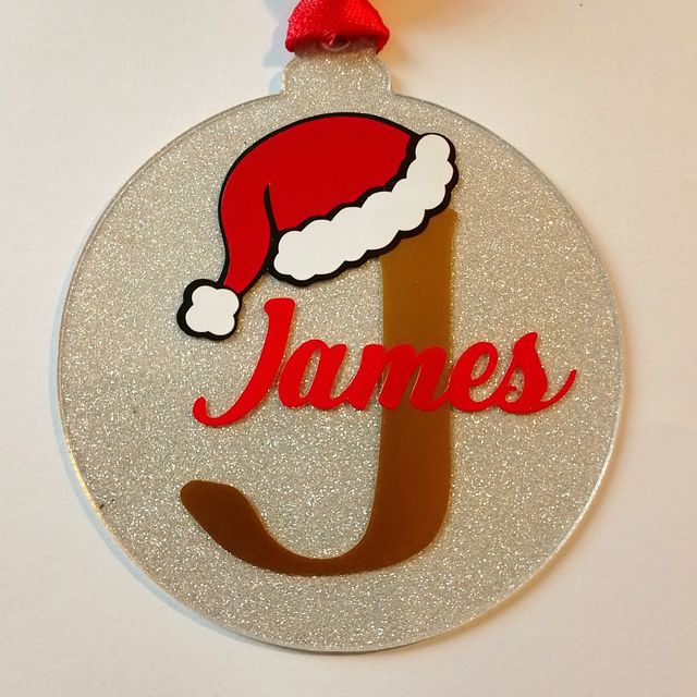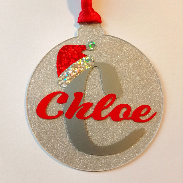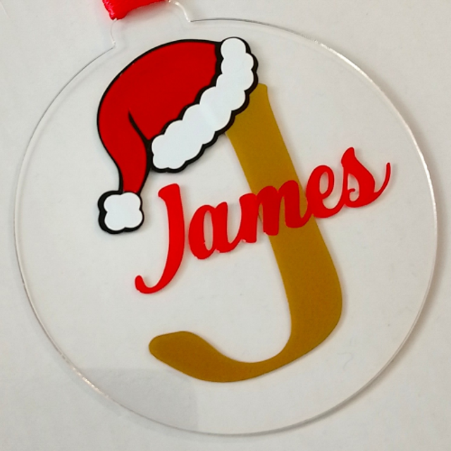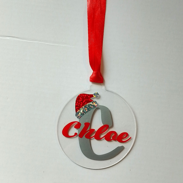 Personalised Acrylic Christmas Tree Decoration - Santa Hat Initial & Name