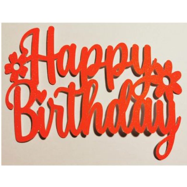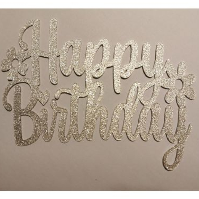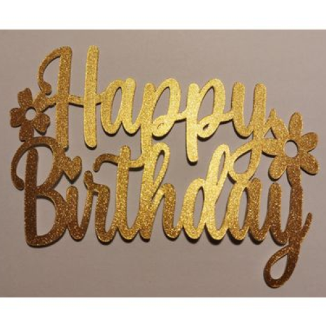 Sparkly Glitter Happy Birthday Flower Cake Topper