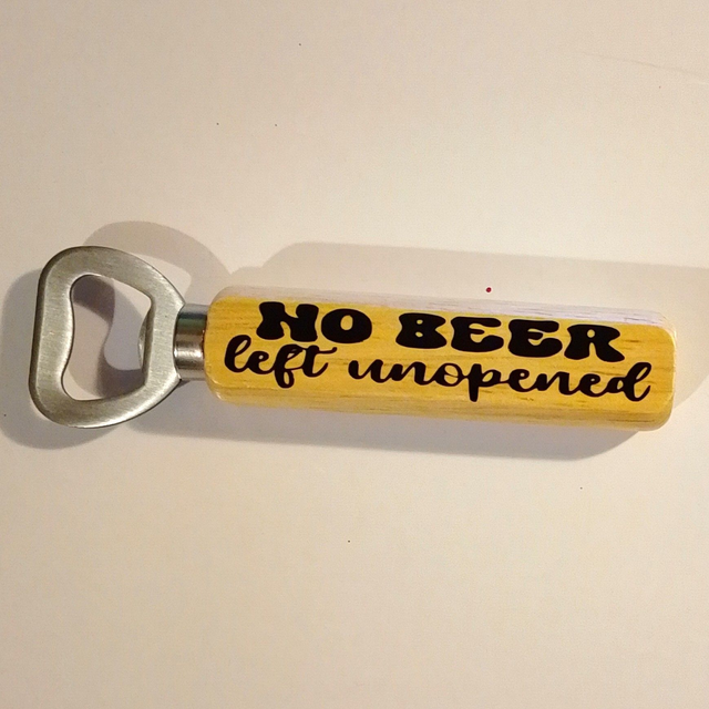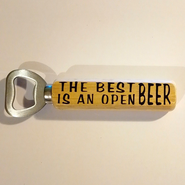 Made from light yellow wood, it features a funny quote perfect for Father's Day or a gift for any beer lover
