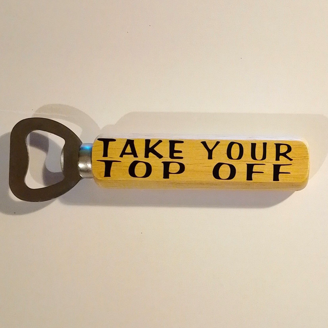 With a lightweight and easy-to-use handle, this bottle opener is a practical and humorous gift.